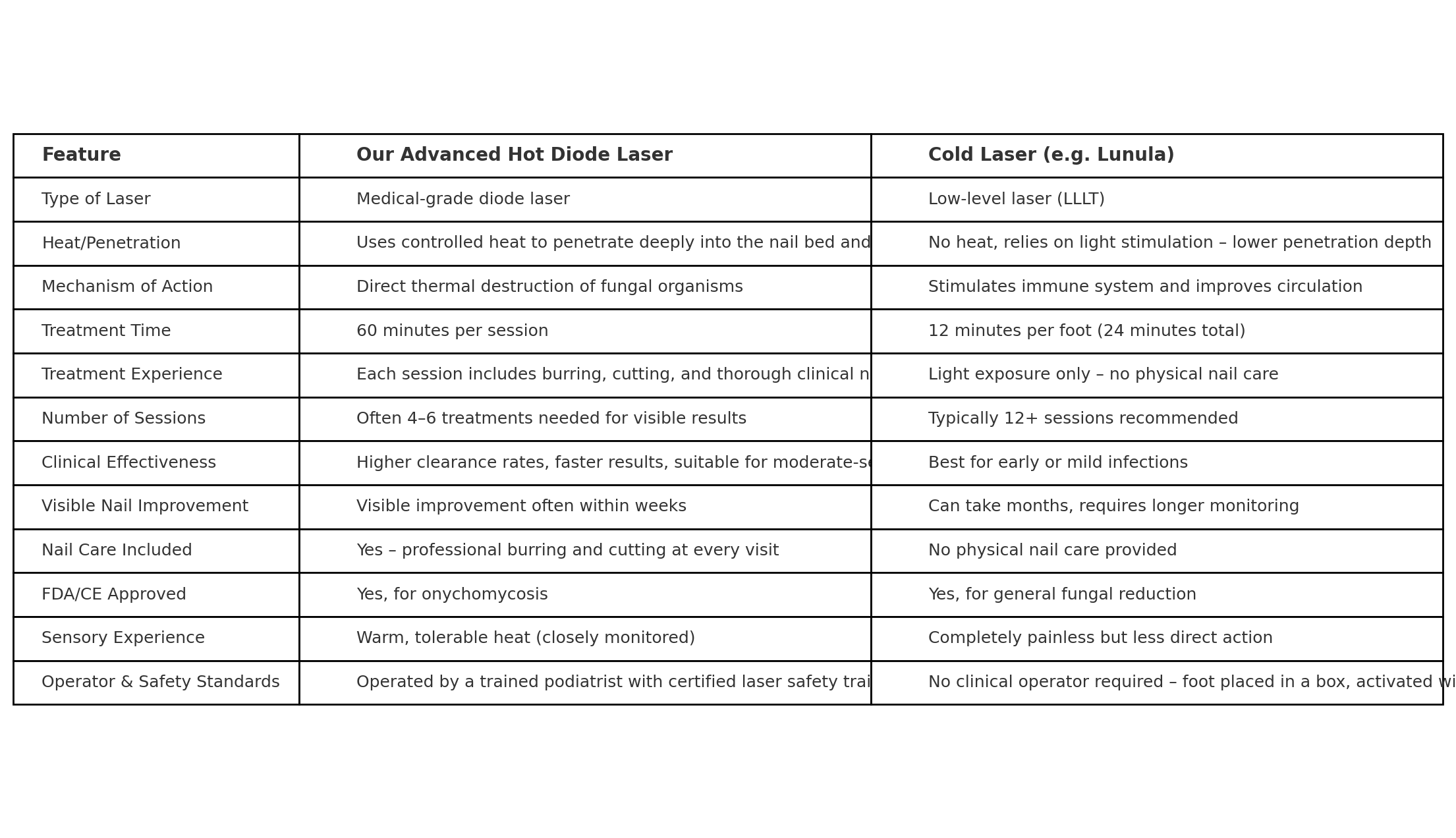 Because cold lasers pose minimal therapeutic risk, they can be used with no formal training or regulation, highlighting their limited clinical impact. In contrast, 980nm diode laser therapy requires specific legislative training and clinical expertise, reflecting the power and precision of the technology. If you’re seeking real results—not just symptom suppression—our advanced laser system is the superior choice for lasting nail health.